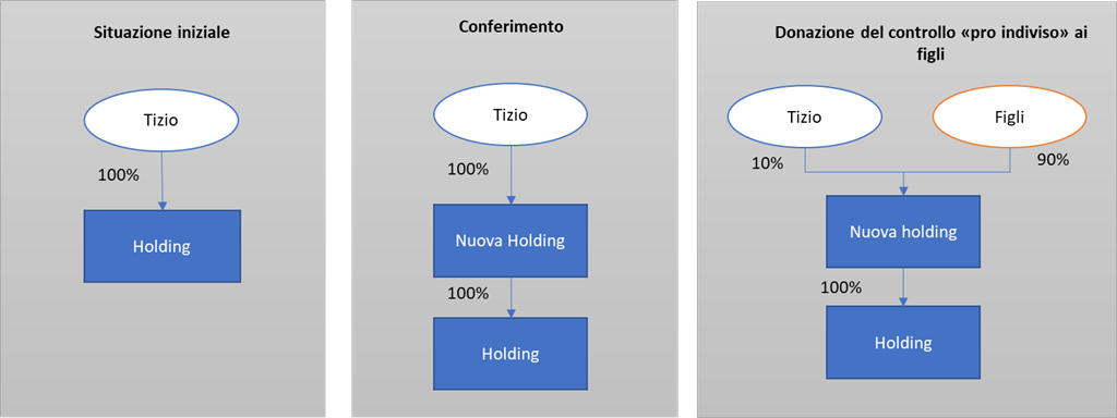 Nell’ottica di un passaggio generazionale, la holding di famiglia è lo strumento più utilizzato, è l’unico che riesce a gestire i conflitti tra soci o familiari in quanto eventuali contrasti saranno gestiti in maniera unitaria. Nella holding di famiglia il controllo è tutto concentrato nella mani del suo fondatore il quale trasferisce nella holding le partecipazioni che detiene nelle società operative e anche quelle degli eredi i quali acquisiscono la propria quota del capitale della holding.